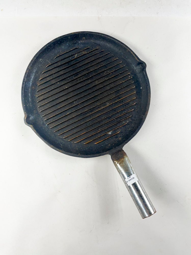 Se trata de una plancha circular hecha de hierro con un diámetro de 29,5 cm. Presenta un color negro y se encuentra en buen estado. Es ideal para cocinar pancakes o panqueques. La plancha tiene forma circular y está fabricada con material de hierro.