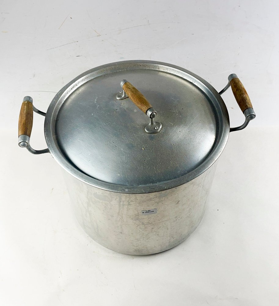 Se trata de una olla de metal de 25 x 31 cm, con asa y borde. La condición es excelente. Se observan detalles en la superficie que sugieren un uso cuidadoso. La olla tiene forma redonda y está hecha de metal. Tiene dos asas para facilitar su manipulación. El color principal es plata, aunque también se aprecian tonos de color2 y color1 en las imágenes. Se destaca la presencia de una tapa que permite cerrar la olla.