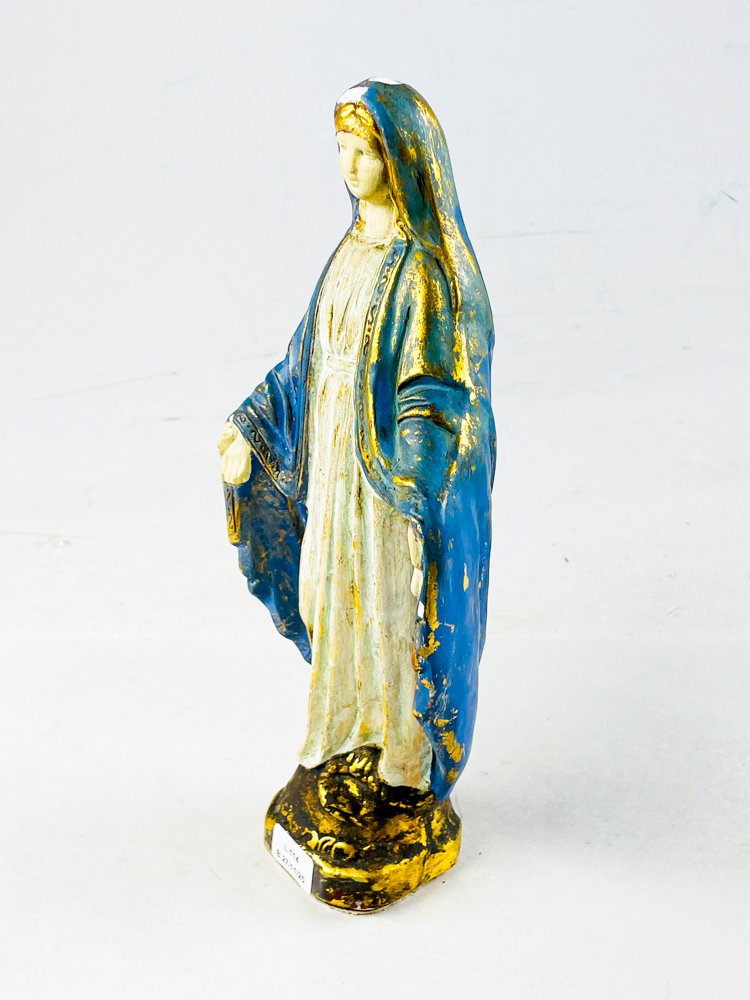 Esta hermosa figurita de una mujer, meticulosamente tallada en porcelana, presenta cabello rubio y un halo alrededor de su cabeza. La figura está hecha de porcelana azul y oro, con detalles intrincados que la hacen única. La condición es excelente y se puede apreciar en las imágenes proporcionadas.