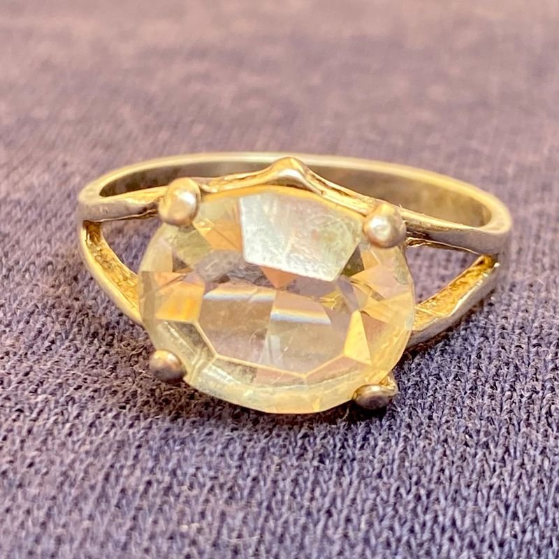 Este anillo de plata cuenta con una piedra central, pesa aproximadamente 3.2 gramos y presenta un diseño elegante. Se observan detalles en oro y plata, lo que sugiere que es un artículo de alta calidad. La condición del anillo es excelente, según el análisis de las imágenes.